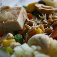 A vegetable mix preferably with legumes (peas, beans) and corn. It's best served in a way that allows all the ingredients to be visible. Eating it with chopsticks is much more interesting.