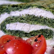 Evenly distribute the filling over the spinach base and roll it up (you can add sun-dried tomatoes to the filling if desired). Refrigerate for at least 30 minutes (preferably 3–4 hours). Slice with a sharp knife. Serve cold or reheat.