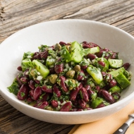 This salad can be described as 'country-style' — it looks so juicy and vibrant. However, cucumbers are available all year round, and canned red beans are too, so you can create a countryside mood in just two minutes: add chopped herbs, capers, and onions to the mix, and prepare a dressing made of Dijon mustard, vinegar, olive oil, and maple syrup. An exquisite finishing touch and a subtle detail that transforms a set of ingredients into a memorable dish.