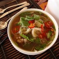 Before serving, add fresh mint leaves and squeeze half a lime. For those who like it spicy, add a couple of slices of chili. Top with finely chopped green onions.