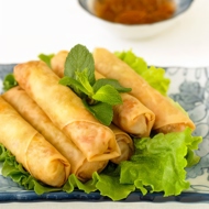 Vietnamese Crab Spring Rolls with Mint Leaves and Sweet Chili Sauce