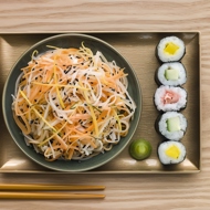 Peel the carrots and daikon and cut them into thin, long strips (the thickness of a matchstick).