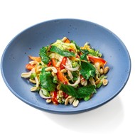 Serve the Vietnamese-style summer salad with chicken, drizzled with the remaining dressing and sprinkled with peanuts.
