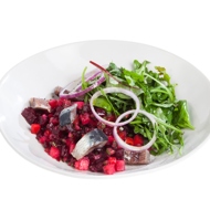 You can buy a set of vegetables for the vinaigrette at the store or prepare it yourself by boiling potatoes, beets, and carrots, and then dicing them.