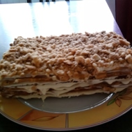 As the sheets are baked, stack them on a plate one on top of the other, spreading with boiled condensed milk.