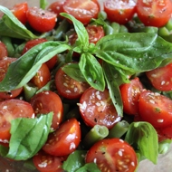 Squeeze the juice from the lemon, mix it with olive oil, and add salt, pepper, basil, and sesame seeds.