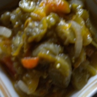 Slice the tomatoes into wedges. Grate the carrot on a coarse grater. Cut the onion into half-rings. Mix everything in an enameled pot, add salt, and let it sit for 4 hours. The salad mixture should release liquid, which needs to be drained to remove the excess bitterness of the green tomatoes.