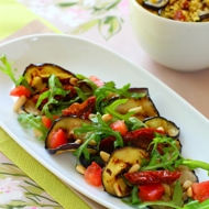 Warm Grilled Eggplant Salad with Cherry Tomatoes and Herbs