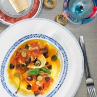 Add the diced tomato, olives, and capers (it’s best to chop the capers with a knife beforehand) to the same skillet.