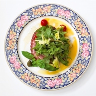 Thoroughly rinse the octopus, then ceremoniously lower it into boiling water and cook for three and a half to four hours, until it becomes tender. Once cooked and cooled, cut off the tentacles from the octopus. You will need one tentacle for each serving of salad, so one octopus can make eight servings. Be sure to reserve some of the broth.