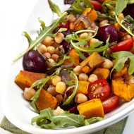 Warm pumpkin salad with chickpeas and tahini dressing