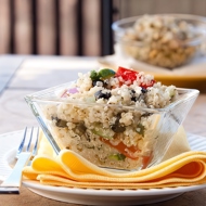Add the beans and water to the skillet, stir, and add the quinoa. Warm slightly and serve.