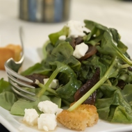Warm rainbow chard salad with pine nuts, garlic, and feta
