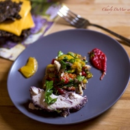 p.s. The recipe requires boiled or baked chicken or turkey fillet. In my version, I used turkey that I baked in foil with blackberries, so the meat has a beautiful purple color ;)