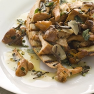 In a skillet, heat the olive oil and sauté the sliced garlic and finely chopped chili until soft. Add the mushrooms and cook until heated through. Season with salt and pepper to taste, add the herbs, drizzle with lemon juice, and serve immediately.