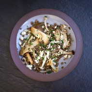Warm Salad with Mushrooms, Lentils, and Feta Cheese