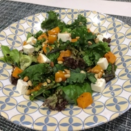 Warm Salad with Pumpkin and Feta Cheese with Balsamic Dressing
