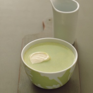 Pour the soup into small bowls and add a spoonful of crème fraîche to each.