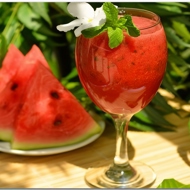 Remove the seeds and rind from the watermelon, cut it into cubes, place it in a blender, and add honey. Also, add ice cubes if your blender is powerful enough for this.