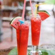 Pour the watermelon mixture into a shaker and add ice. Shake well and strain into a champagne glass.