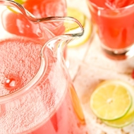 Pour the watermelon juice into a pitcher. Add the lime juice and ginger syrup. Then add ice, stir, and serve garnished with lime wedges.
