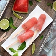 Before pouring the sorbet into molds and freezing, place a cube of watermelon at the bottom of each mold.