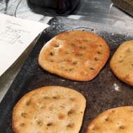 Shape small patties. Place the patties on a baking sheet, brush with olive oil, press down with your fingers to create small indentations, sprinkle with oregano, and cover with plastic wrap.