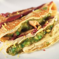 A thick, hot sweet chocolate sauce can be an excellent addition to these pancakes. It will create an electric tension between the cool tartness of the filling and its soft, enveloping, warm essence.