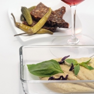 A simple Italian dip, characterized by cannellini white beans and basil. Similar to hummus, you can use dry white beans—soaked in cold water beforehand and boiled for about an hour and a half. You can cook them with a whole onion, a tomato, and a couple of sprigs of dill added to the water.