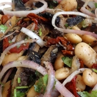 White Bean Salad with Grilled Portobello Mushrooms and Sun-Dried Tomatoes