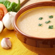 Then add 100 ml of ice-cold water. Transfer to a bowl and while whisking, add another 900 ml of cold water. Season if necessary, strain through a sieve, pushing with a spoon until the last drop. Chill and serve cold, garnished with green grapes.