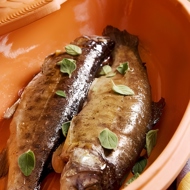 Place the whole fish in a fish dish or simply in a deep baking dish.