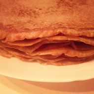 Pour the batter onto the skillet. Cook on one side for 2 minutes until a golden crust forms, then flip to the other side (cook the pancake on the other side for another couple of minutes).