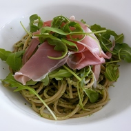 Grind the wild garlic leaves with the nuts (you can substitute cashews with almonds, pine nuts, or walnuts). Add the grated Parmesan cheese.