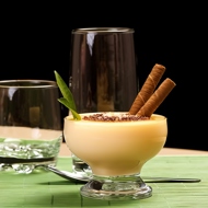 Cool the mixture and distribute it into glasses. Garnish with pieces of bitter chocolate and mint leaves.