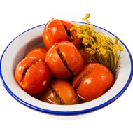 A family recipe from our editor, Emily Smith. This is one of those recipes that were once handwritten in thick culinary notebooks and passed down through generations. The set of herbs for pickling can be changed and supplemented, for example, by adding currant or horseradish leaves. The key here is not just the ingredients, but the surprise found inside each tomato. However, it's best not to go overboard with the additions, as too many can cloud the brine. Opening a jar with the summer aroma of dill is especially delightful in winter, when the weather outside is harsh. Although they rarely last until winter, especially since this recipe falls into the 'quick pickle, quick eat' category: you can and should start tasting them just a week after preparation.