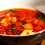 Peel the beets and carrots. Cut into small pieces. Add to the leeks along with the diced bell pepper and pour in the broth. Bring to a boil, reduce the heat, leaving the lid slightly ajar, and simmer until the vegetables are tender, about 1 hour.
