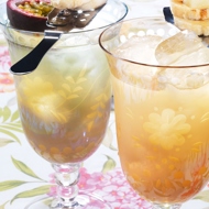 Cut the passion fruit in half and scoop out all the seeds. Add 20 small sugar cubes. Pour in 100 ml of boiling water and mash with a spoon until the sugar dissolves in the passion fruit. Strain the resulting syrup through a sieve.