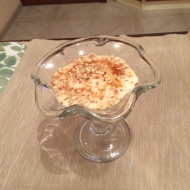Yogurt and honey mousse topped with roasted pears and almonds.