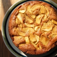 Combine the flour, baking powder, and semolina. Add to the yogurt mixture and mix thoroughly. Spread the batter onto a baking sheet lined with parchment paper. Distribute the apple slices over the batter and place the pie in the oven for 25–30 minutes.
