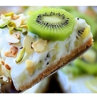 Garnish with slices of kiwi (2 pieces) and lightly toasted almond flakes.