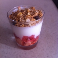 The parfait is quick and easy to make, and most importantly — it tastes wonderful. You can use any fruit: apple, peach, orange, banana, or whatever you like! You can even use berries! It’s not critical! You can also make a mix like peach-apple or banana-strawberry, however you prefer! I once made it with watermelon. I usually use Activia yogurt at 1.5%, the regular kind in a jar, but you can use any, even fruit-flavored! However, I prefer the plain kind, as it makes the parfait more delicate.