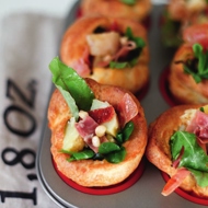The finished puddings can be served warm or cold. You can fill them with a salad of boiled potatoes, crispy pancetta, sun-dried tomatoes, pine nuts, and a peppery salad like arugula or leaf mustard.