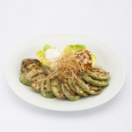 Prepare zucchini caviar, which will serve as a sauce for the dish. Chop the onion, carrot, zucchini (50g), and bell pepper into small, evenly-sized pieces. Sauté in vegetable oil until semi-cooked.