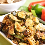 Cut the zucchini into small pieces and marinate in cayenne pepper, tamarind paste, and a small amount of water for 15 minutes.