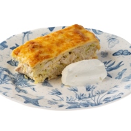 Grease a baking dish with butter, pour in the mixture, smooth it out, and place it in an oven preheated to 356°F for 35 minutes.