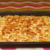 Grease a baking dish with vegetable oil and spread 2/3 of the batter in it, smoothing it out, and bake for about 15 minutes at 200ºC until a golden crust forms.