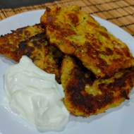 These fritters turn out very tender, so be careful when flipping them in the pan. They can be served hot or cold, with sour cream or any other sauce based on it.