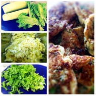 Zucchini Fritters with Green Salad, Arugula, and Basil