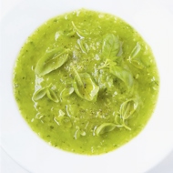 A creamy soup with a strong basil aroma (you'll need a bunch of basil for four servings) and a delicate zucchini texture. Recipe from a popular culinary book.